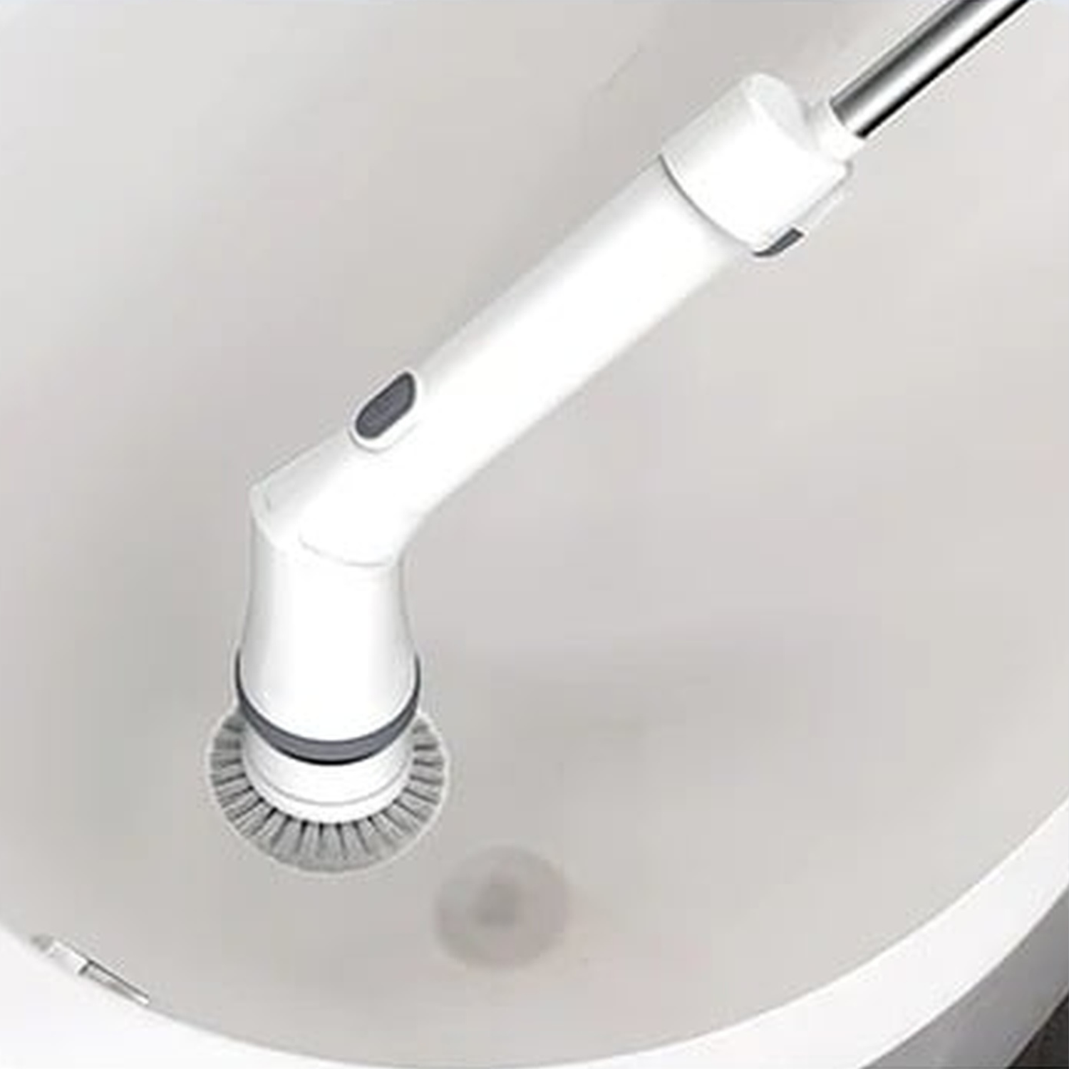 The 360° rotating brush and ergonomic extension handle allow easy access to corners, tiles, sinks, and more.