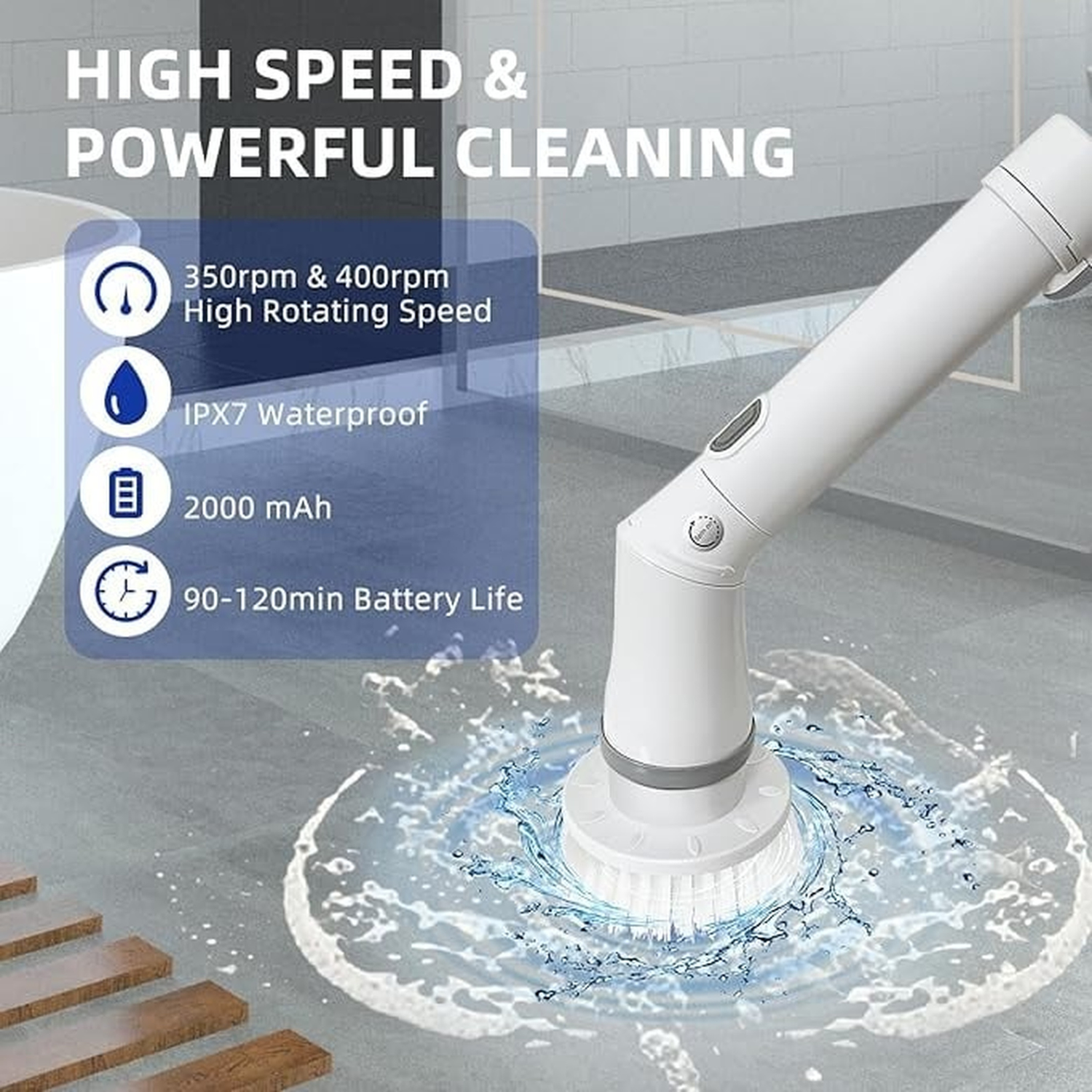 Say goodbye to tangled cords and limited reach. With its high-capacity 2600mAh rechargeable battery, this scrubber provides up to 90 minutes of uninterrupted cleaning, letting you tackle multiple rooms with ease and efficiency.